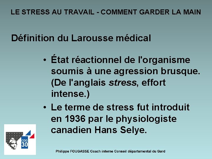 D?finition du stress au travail.
